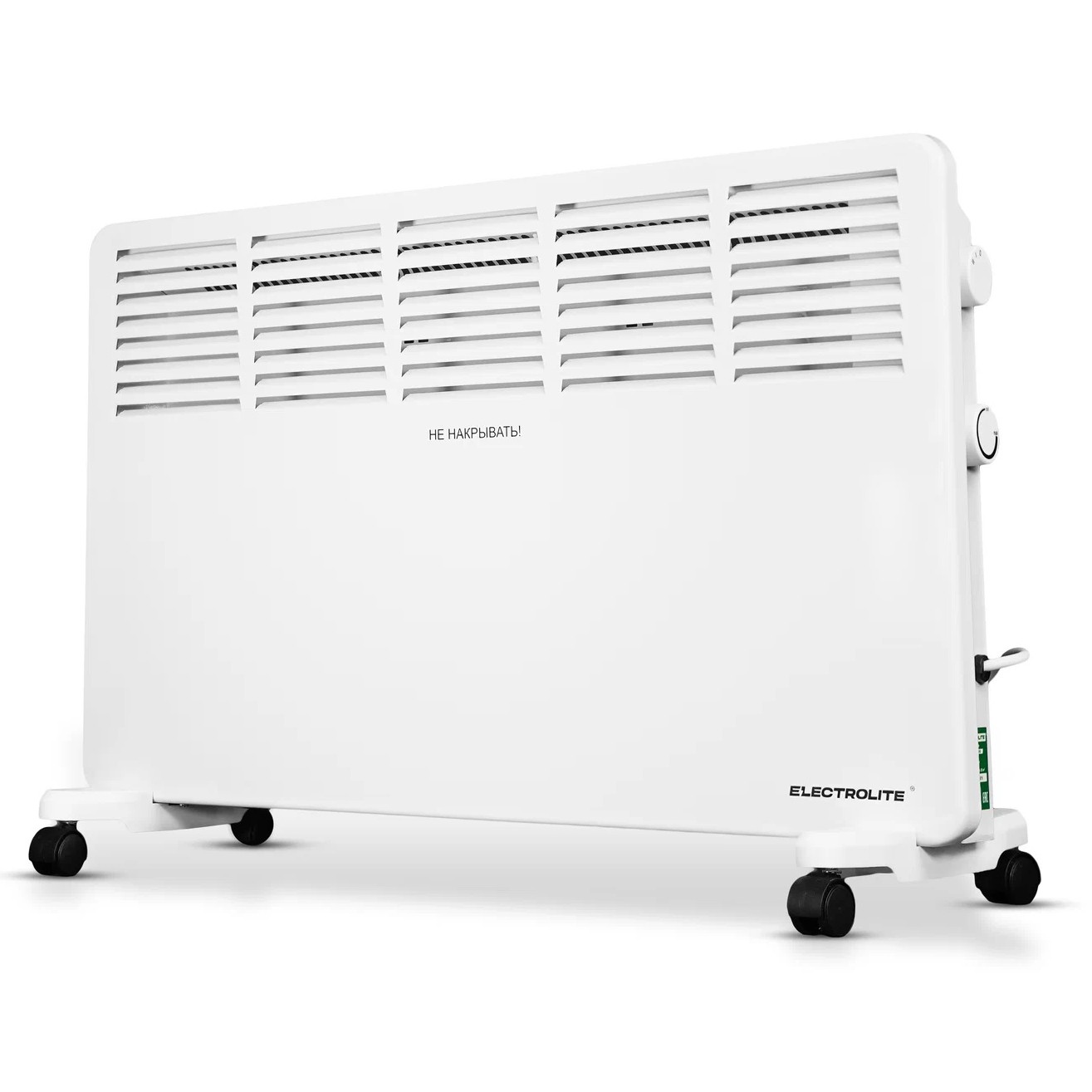 Простой и надёжный электрический конвектор, имеет механическое управление, защиту от перегрева и может устанавливаться на пол или на стену.