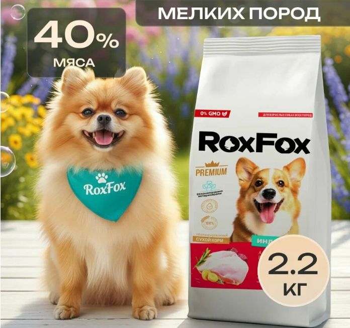 Корм для собак RoxFox, полнорационный для мелких и миниатюрных пород с индейкой 2,2 кг на Яндекс Маркет
