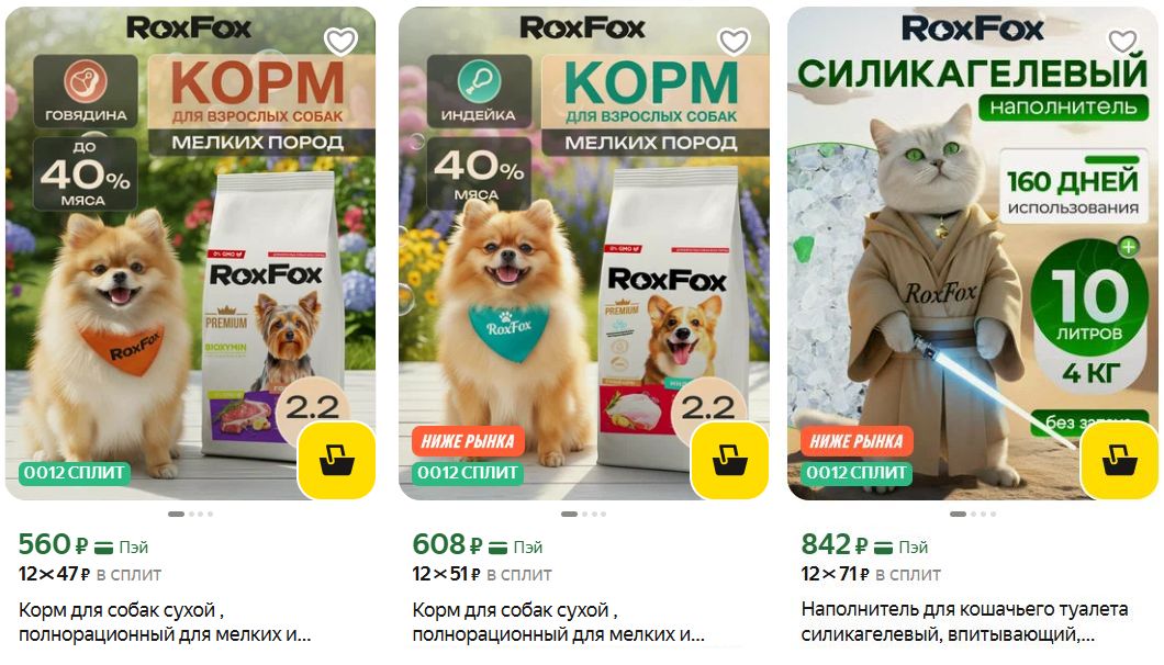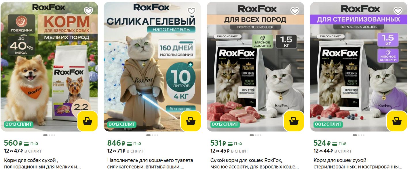 Ребята, кто животных держит - смотрите. Корма и наполнители RoxFox на Маркете по отличным ценам. Сама беру, всё норм.