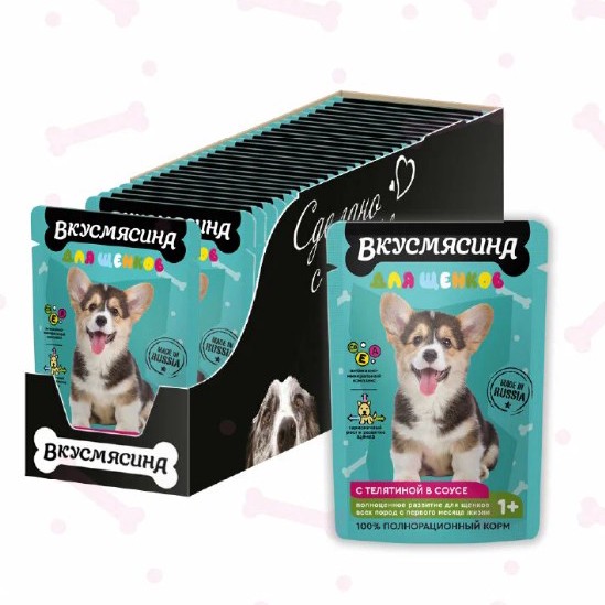 Влажный корм для щенков, пауч, кусочки с телятиной в соусе, 85 г × 30 шт - 857₽ (около 28,5₽ за пауч)