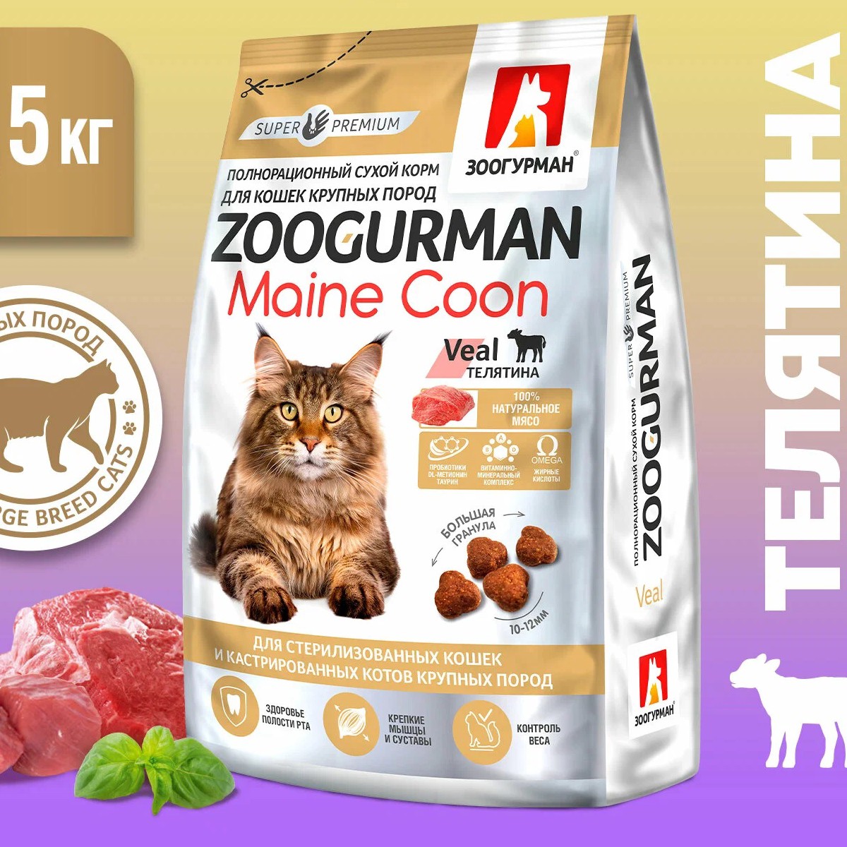 Корм сухой взрослых кошек крупных пород Maine Coon Телятина/Veal 1,5 кг за 749₽
