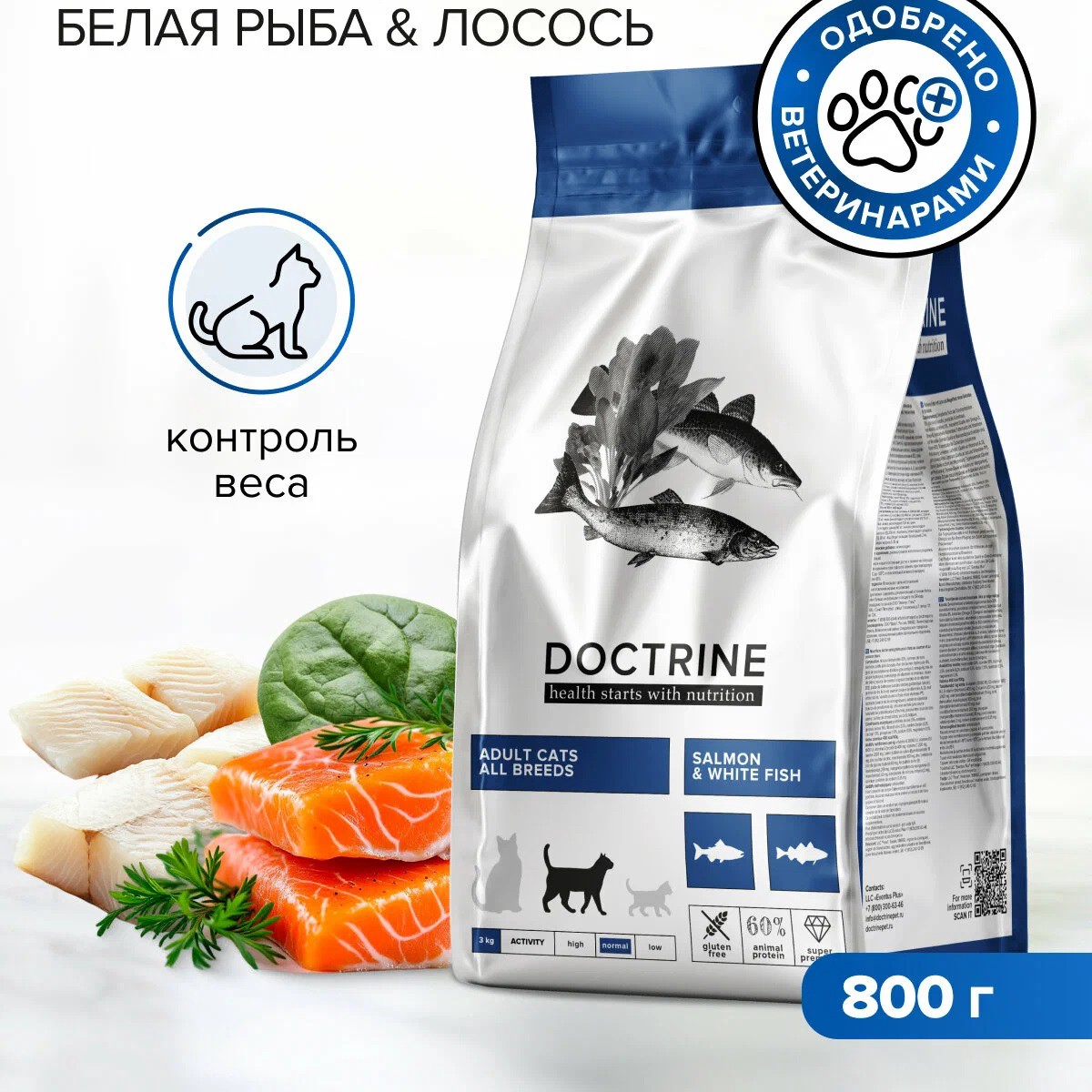 Doctrine Корм для кошек сухой лосось и белая рыба, подходит для стерилизованных, беззерновой, 800 г за 532₽