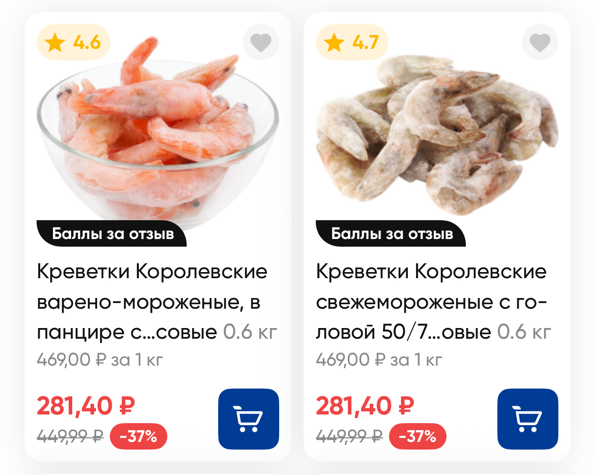 В Ленте креветки свежезамороженные и варено-мороженные за 469 рублей за килограмм.