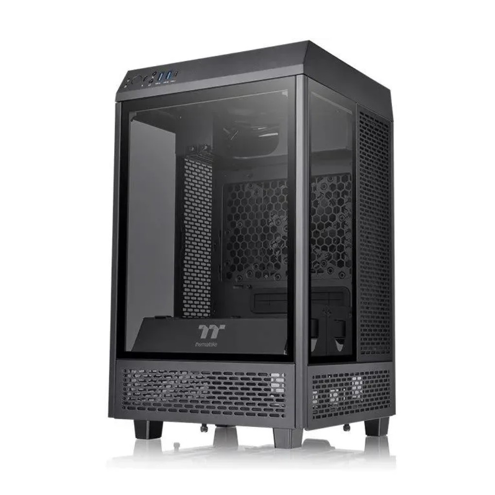 Компактная вертикальная башня для сборки мощного ПК на платформе mini-ITX. Несмотря на небольшие габариты (266×463×266 мм), внутри размещается полноценная система: видеокарта до 330 мм, процессорный кулер до 190 мм, блок питания ATX до 180 мм. Уже в комплекте идут два 120-мм вентилятора (сзади и сверху), а для охлаждения можно добавить 120/140 мм снизу или СВО 120 мм. Корпус полностью прозрачен - три панели из закаленного стекла (передняя, левая и правая) позволяют любоваться компонентами. Есть фронтальные порты: USB 3.0 (2 шт.), USB 3.1 Type-C, аудиоразъёмы. Внутри: 2 места под 3.5" диски и до 4 под 2.5". Вес 6.1 кг.