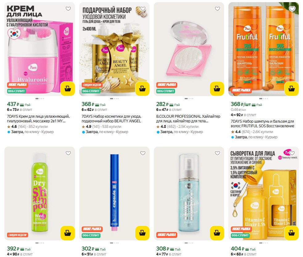 Ребята, наткнулся на Яндекс Маркете на официальный магазин 7DAYS. У них сейчас вполне приятные цены на уходовую косметику. Если любите этот бренд или просто ищете что-то новое для ежедневного ухода - посмотрите подборку. Вот что нашёл: