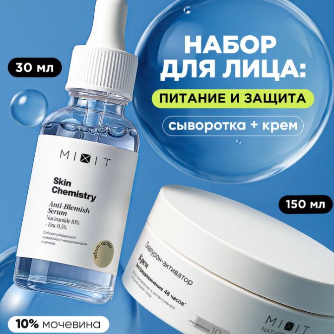 Сыворотка для лица от прыщей с ниацинамидом + увлажняющий крем за 594₽. Комплексный уход за проблемной кожей