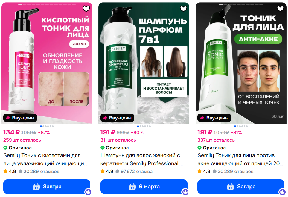 На Ozon сейчас хорошие цены на уходовую косметику Semily. Всё с учётом Ozon карты. Подборка для тех, кто ищет качество по разумной цене. Весь каталог косметики тут: https://go.hl.ru/EMUOq