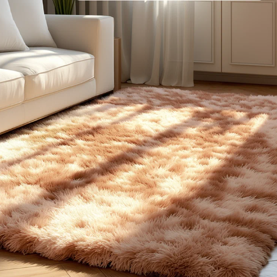 Сейчас можно взять мягкий ковёр среднего размера всего за 1366 рублей с применением промокода за подписку на магазин. Размер 160 на 230 см, длинный ворс 35 мм, цвет бежевый градиент.