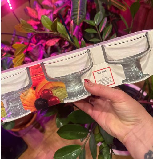 Из стекла, на ножке, классические. Для мороженого, десертов, закусок. Можно в посудомойку.
