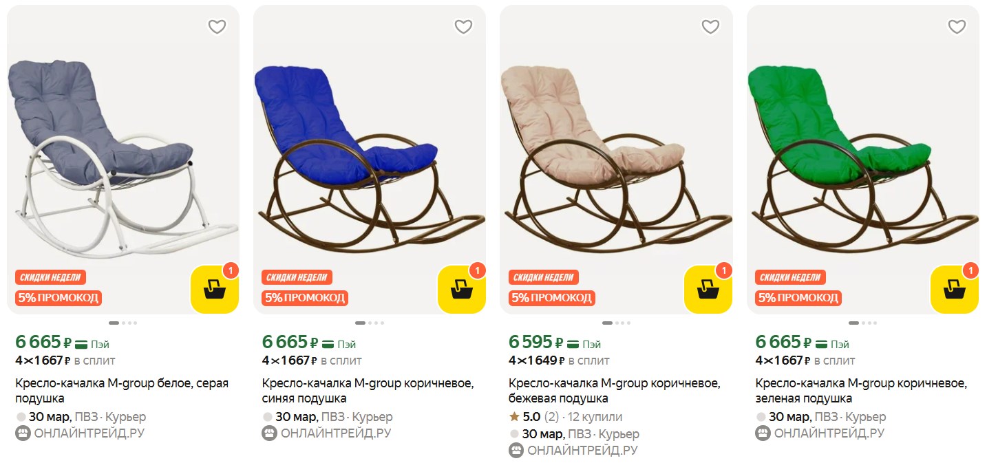 Симпатичный вариант для дачи или балкона. Кресло-качалка M-group за 6266₽ по промокоду 7C611B84 - цена вполне гуманная.