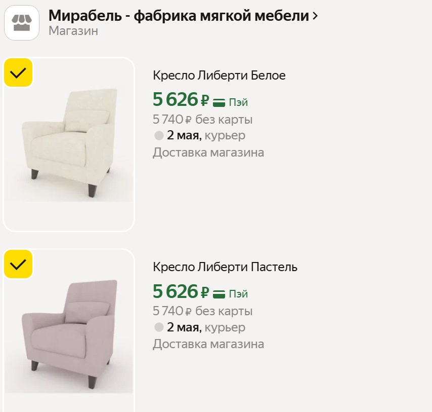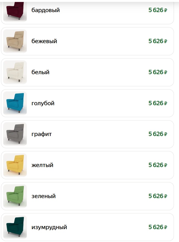 Выглядит как удобное и добротное кресло для дома. Без наворотов, но с правильным наполнением и хорошим каркасом. Каркас из массива дерева и фанеры, ножки из бука. Надёжно, не развалится через год. Наполнитель пенополиуретан, сиденье на пружинной «змейке». Не продавливается, держит форму. Спинка откинута назад, мягкое сиденье, в комплекте небольшая подушка. Садишься и сразу расслабляешься. Расцветок полно. Есть платная доставка 599р.