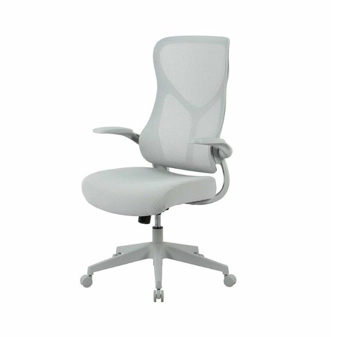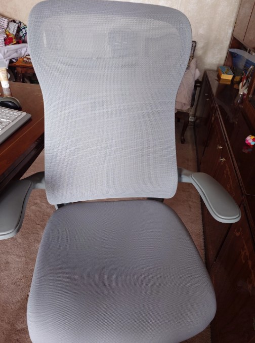 Спинка из сетки, это большой плюс летом или если работаете по многу часов - спина не потеет. Сиденье мягкое, форма анатомическая, поясницу поддерживает хорошо. Подлокотники поднимаются вверх, так что кресло легко задвинуть под стол, если нужно освободить место.