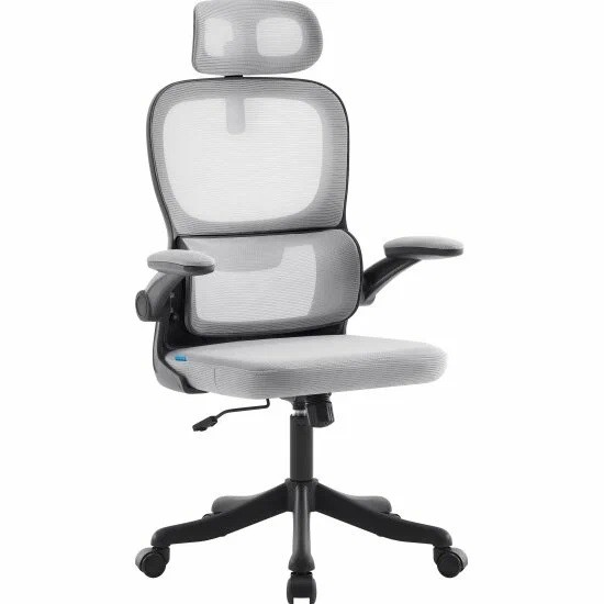 Неплохой вариант для тех, кто проводит за рабочим столом много времени. Есть всё необходимое для комфорта: подголовник, поясничный упор, мягкие подлокотники и дышащая сетчатая спинка. Максимальная нагрузка 120 кг, газлифт, механизм качания,