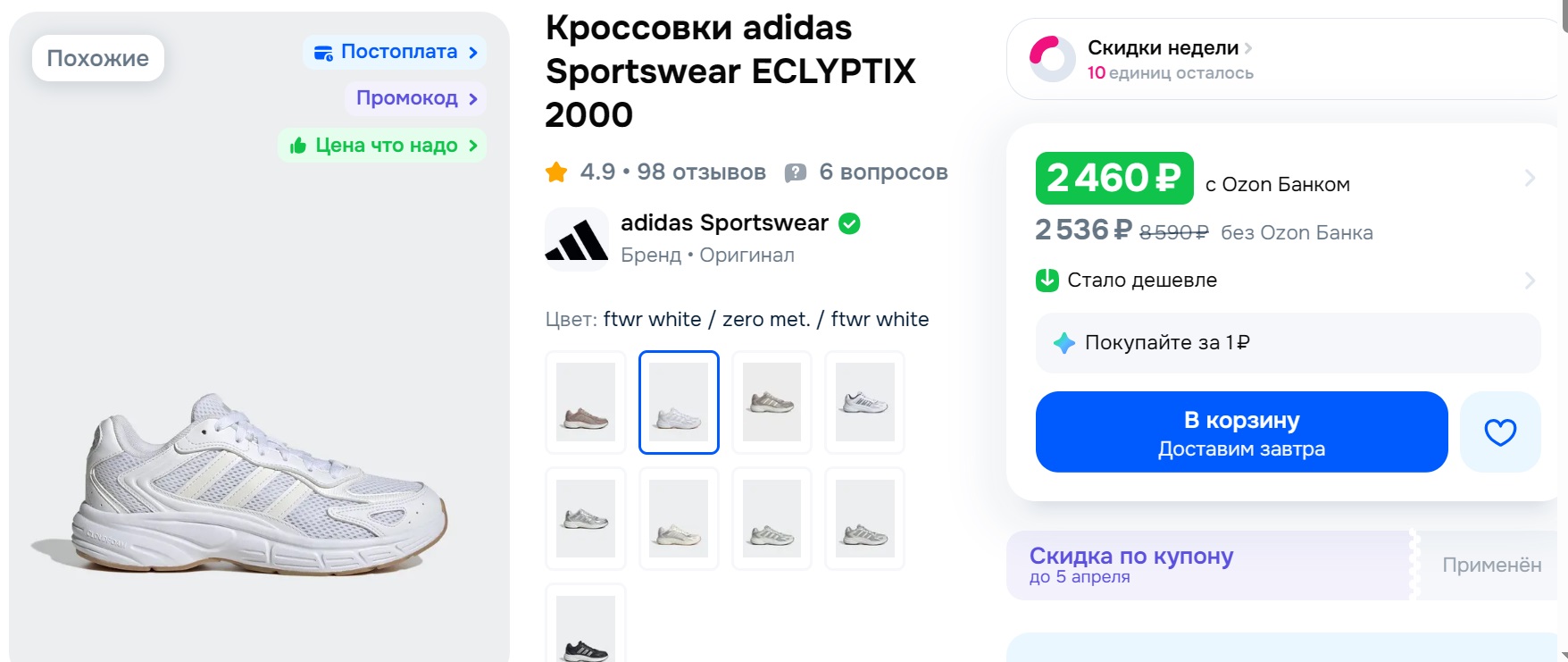Классическая модель adidas Sportswear ECLYPTIX 2000. Для лето то, что надо. Цена зависит от размера