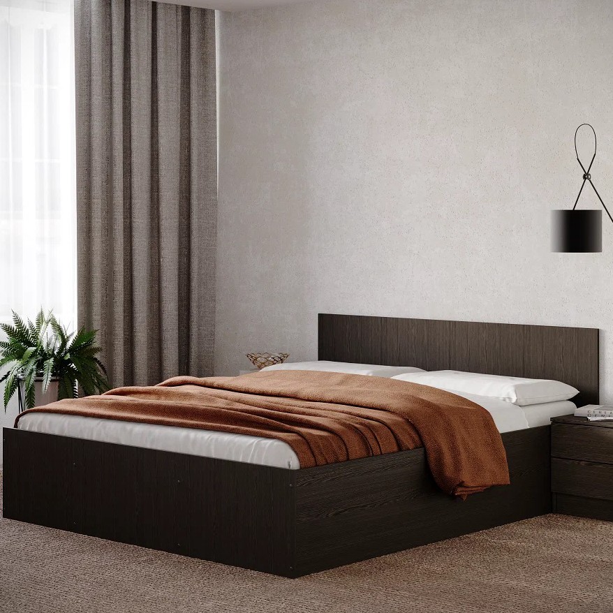 Каркас из ЛДСП, есть ламинированная поверхность - пыль стирается влажной тряпочкой, и никакой химии не надо. Нагрузку держит до 200 кг - это с запасом, даже если дети любят попрыгать на кровати. Стиль лофт, цвет венге смотрится очень благородно. Подойдёт и под современный интерьер, и под скандинавский, и под модерн.