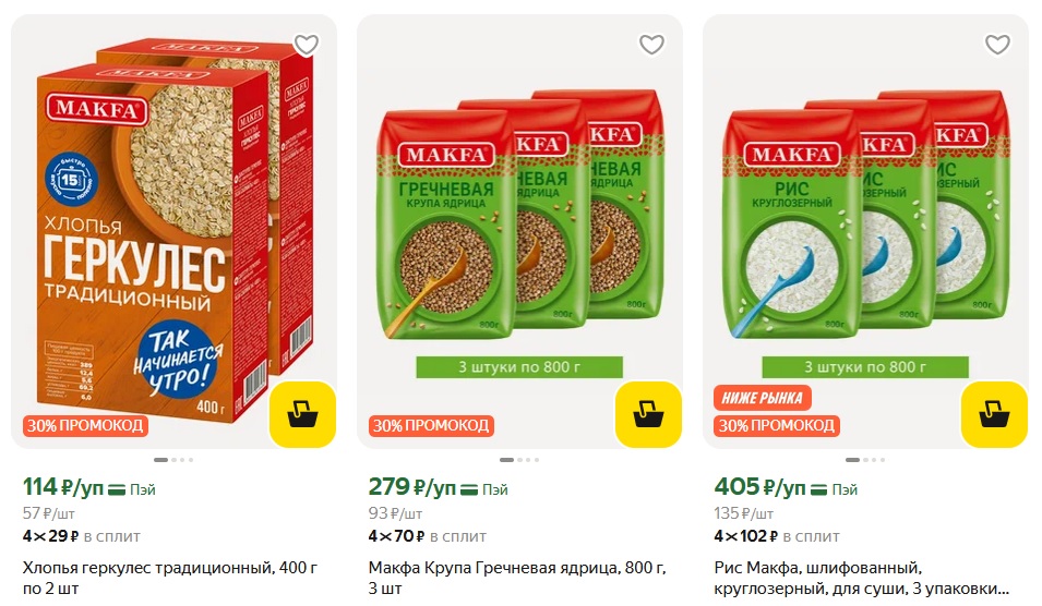 Крупы бренда Макфа с дополнительной скидкой 30%. Отличная возможность сделать запасы продуктов. В каталоге есть различные крупы, каши, мюсли.