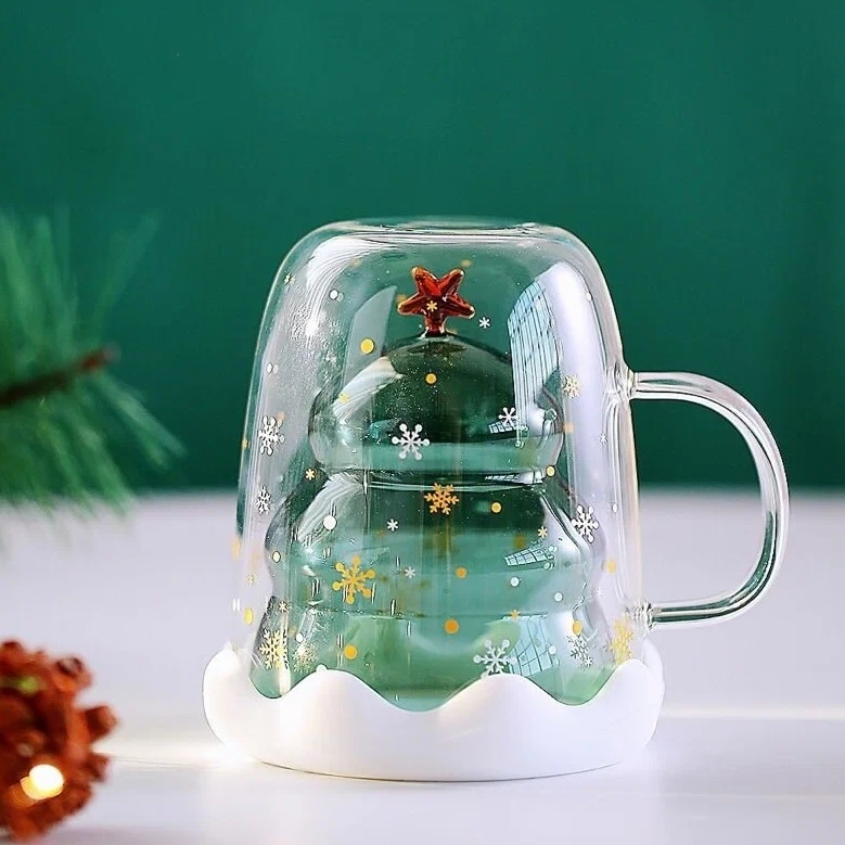 Стильная кружка в новогодней тематике из термостойкого боросиликатного стекла с двойными стенками. Напиток в кружке долго остается горячим, а внешняя стенка не обжигает руки. Объём 300 мл, изготовлена из термостойкого стекла, есть крышка для защиты от пыли и разлива.