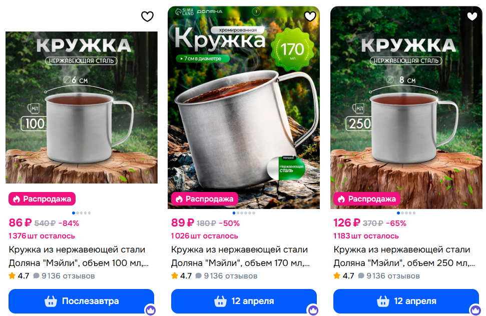 Кружки на любой случай: есть из нержавейки (для походов), стеклянные и керамические (для дома). Цены уже с учётом Ozon карты. В каталоге больше выбора — поставьте сортировку по цене.