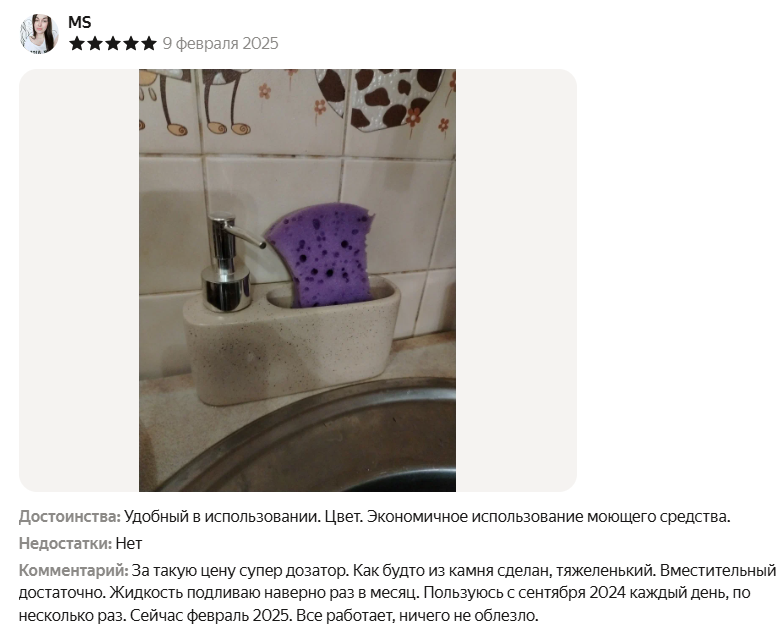 Классная цена! Подходит для жидкого мыла или средства для мытья посуды со встроенным отсеком для губки. Объём 300 мл, сделан из керамики.
