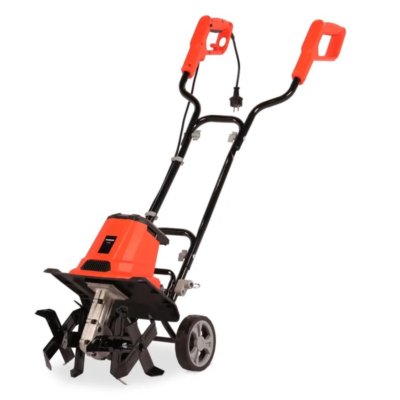 Оснащён 4 фрезами диаметром 20,5 см и колёсами для удобства перемещения. Направление движения и вращения фрез регулируется, что позволяет адаптировать работу под разные задачи: рыхление целины, прополку сорняков или окучивание грядок.