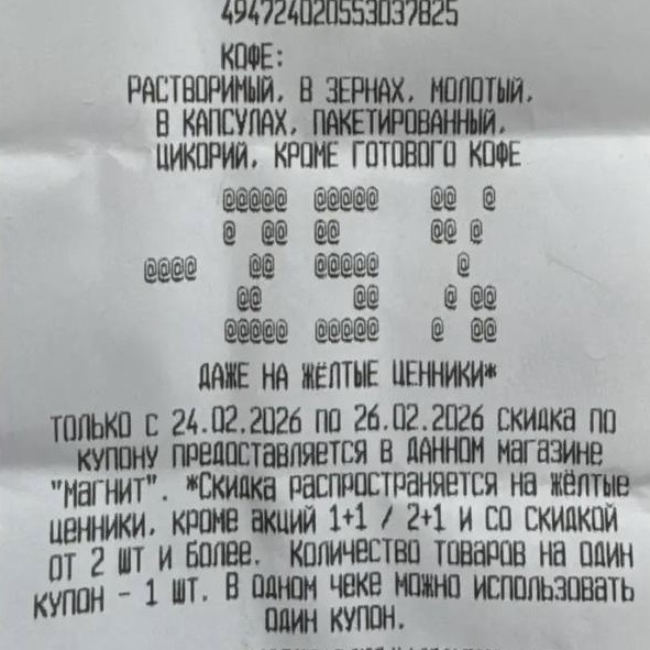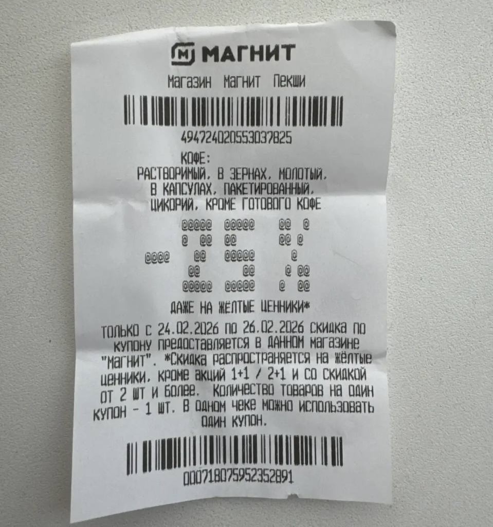 Сработает на кофе в зернах, молотый, в капсулах, пакетированный. Суммируется со скидками, но не с другими акциями.