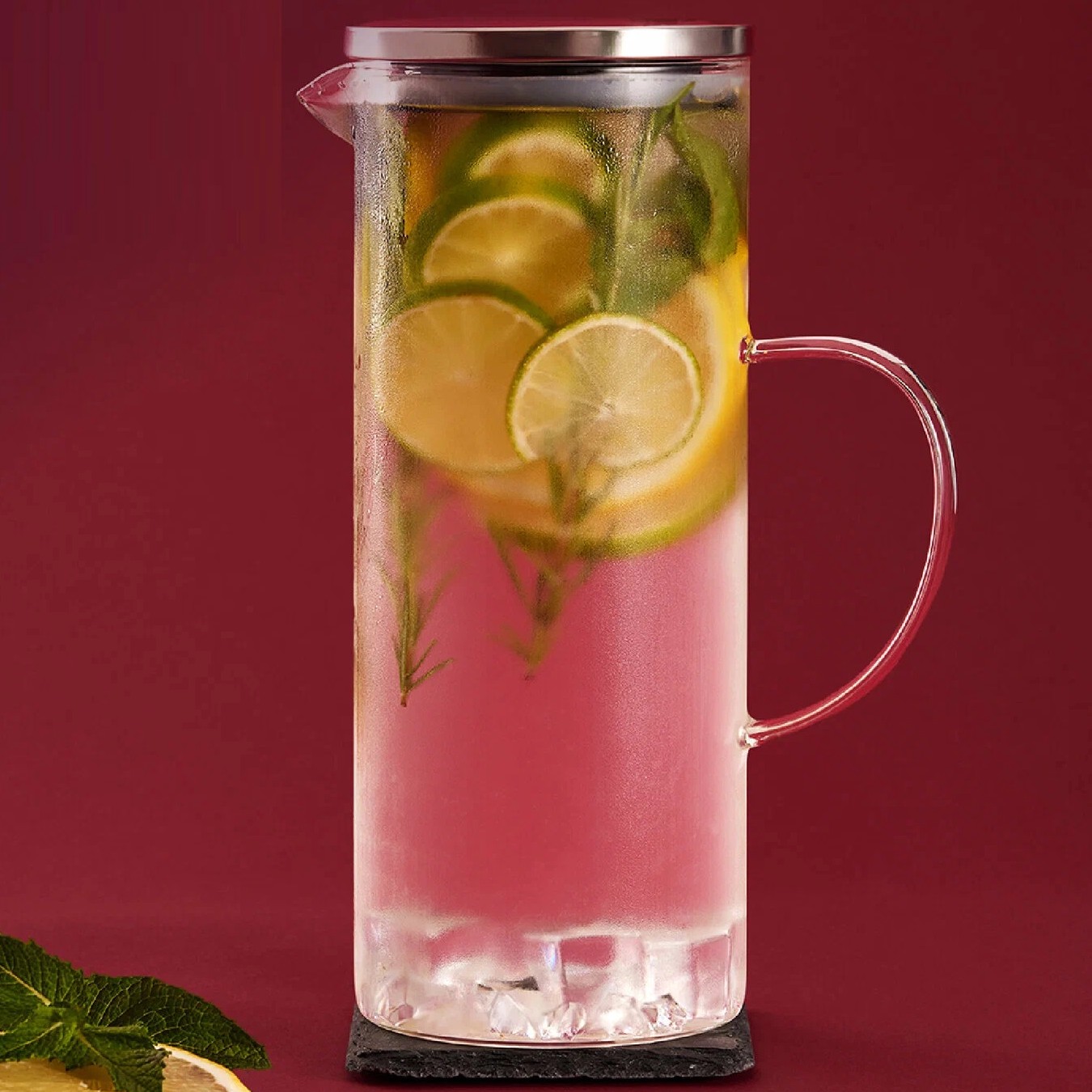 Стекло прочное, термостойкое, можно наливать и кипяток, и ледяные напитки. Не треснет от перепада температур. Крышка металлическая с силиконовым уплотнителем. Закрывается плотно, не подтекает.