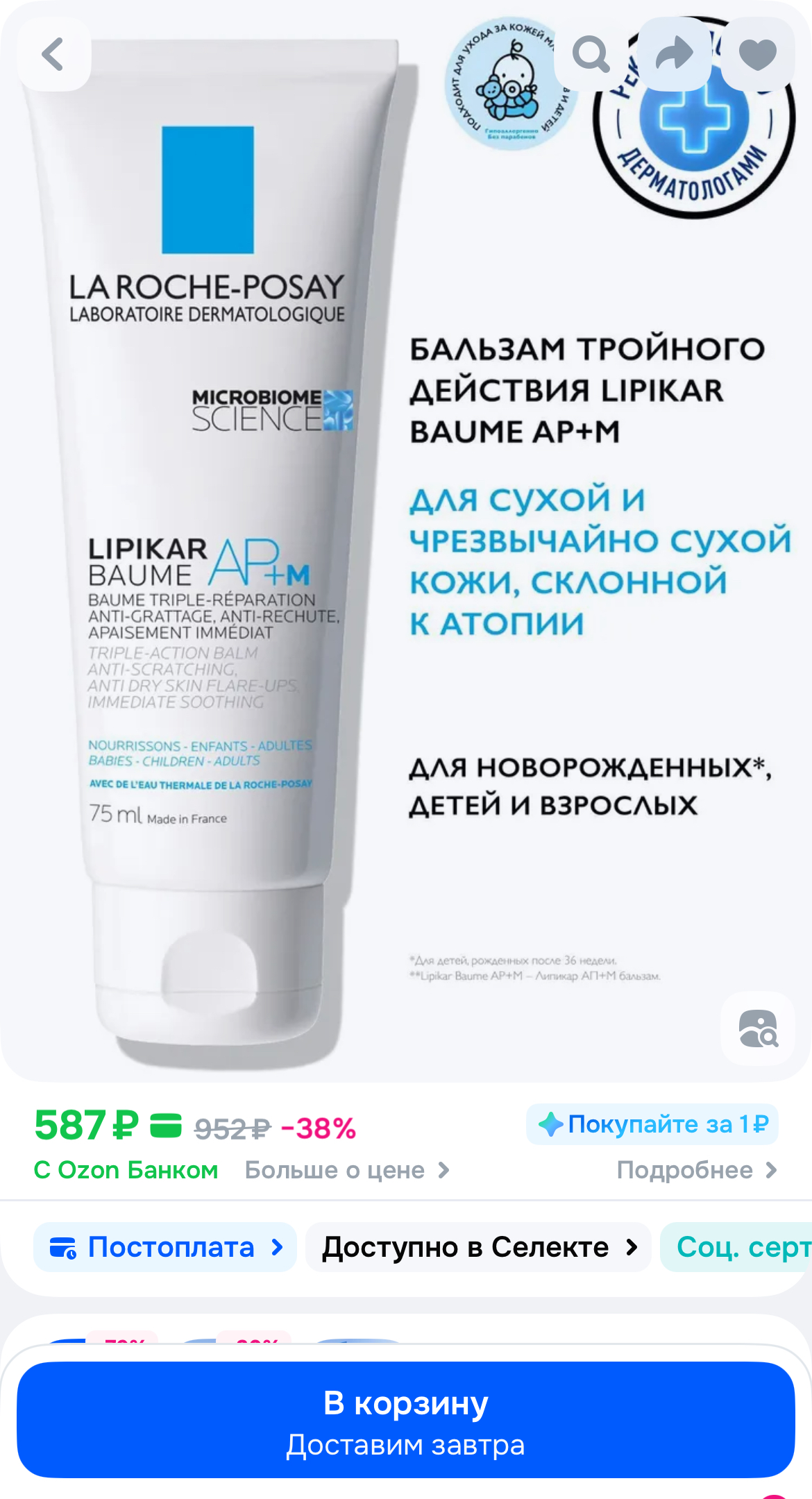 Посмотреть другиеLa Roche-Posay Lipikar AP+M Липидовосполняющий увлажняющий бальзам для лица и тела