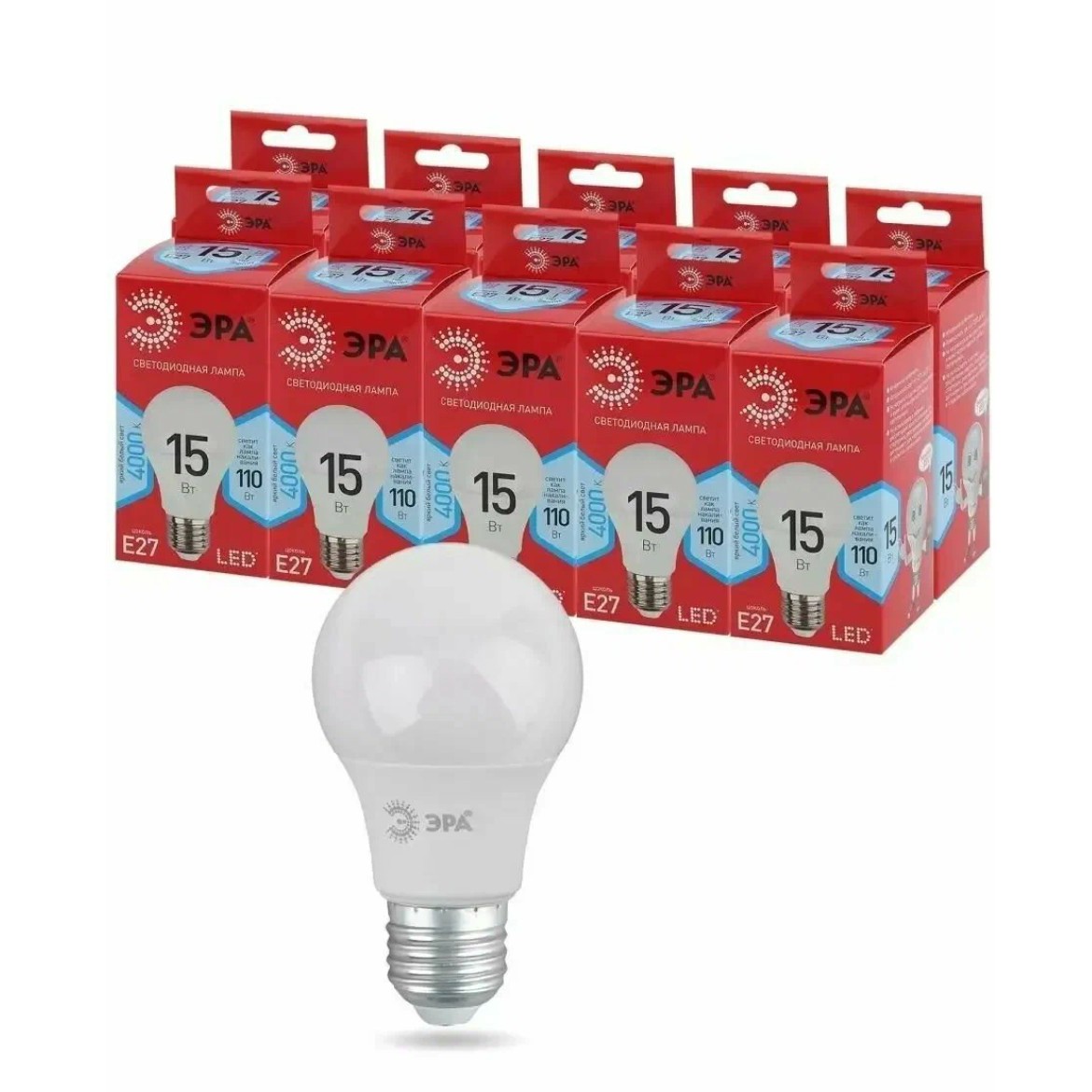 Лампочка светодиодная ЭРА LED Е27 15 Вт A60 груша 4000К нейтральный белый свет набор 10 штук