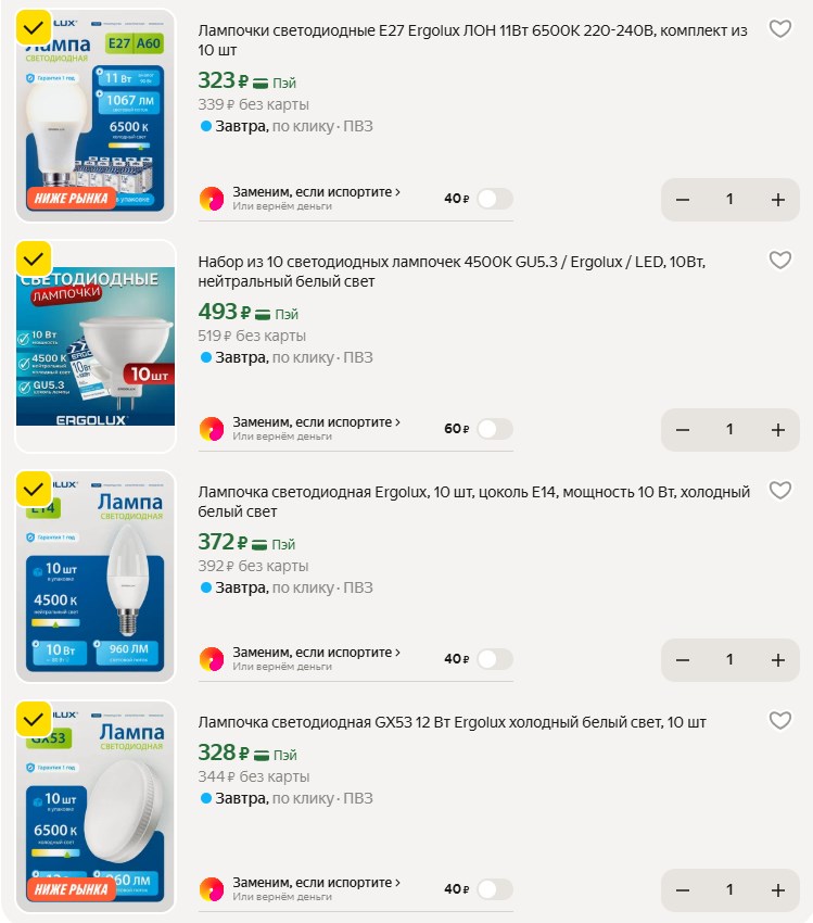 Ребята, кто хочет раз и навсегда закрыть вопрос с лампочками в квартире или на даче - посмотрите ERGOLUX на Яндекс Маркете. Они продаются большими упаковками по 10 штук, и цены очень приятные. Плюс можно прихватить электрический чайник этого же бренда - тоже недорого.