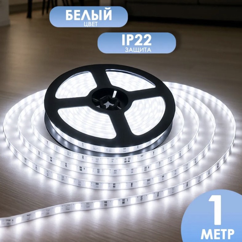 Лента светодиодная SMD 2835 (60 LED) 12V DC IP22 DLED Белая 5000K, 1 м