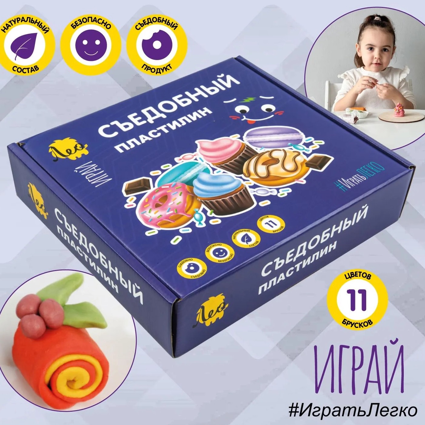 Лео Играй LPEP-001 съедобный пластилин Слепи и съешь, 350 грамм, набор 11 брусков + аксессуары