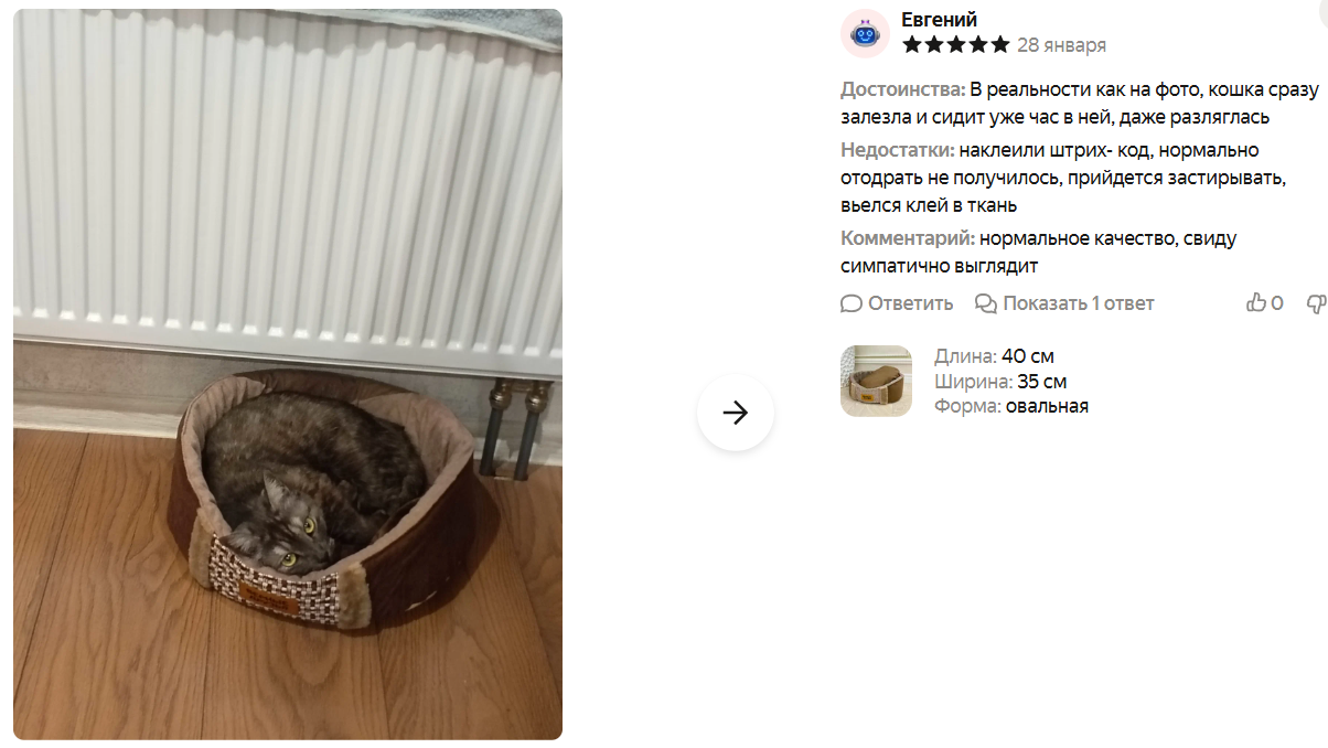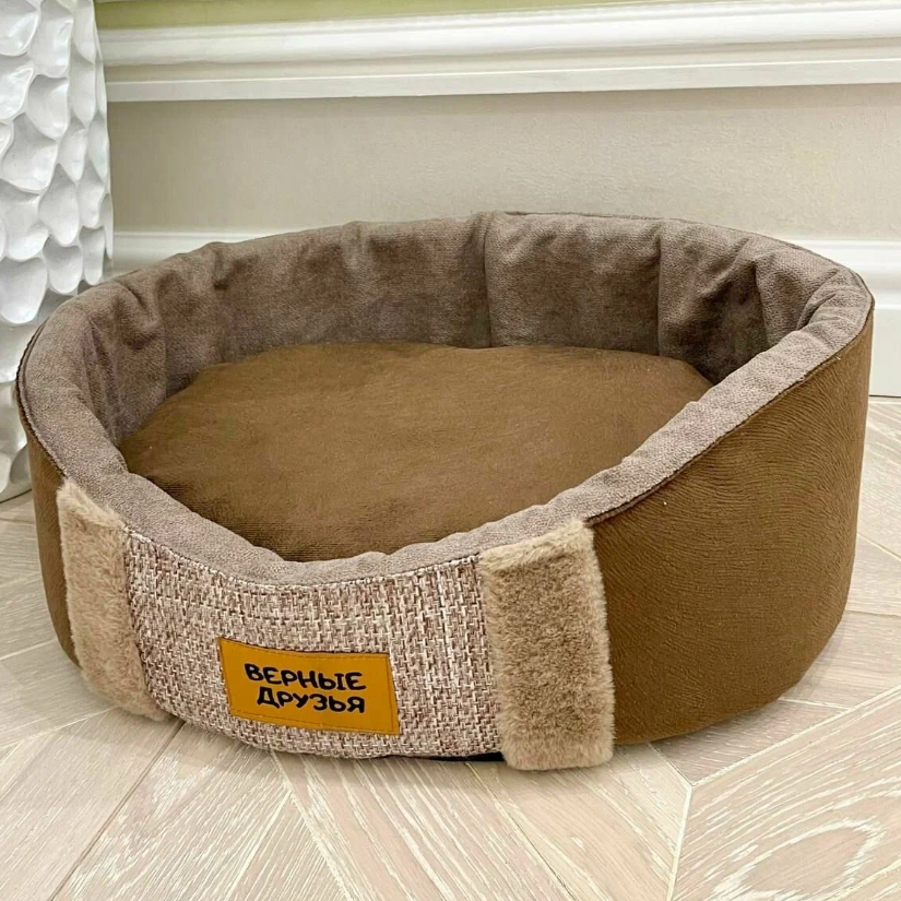 Классная цена! Небольшая овальная лежанка для мелких пород собак и кошек. У неё плотные бортики, чтобы питомец чувствовал себя защищённым и не лежал на сквозняке, и низкий передний край. Обивка из мебельной ткани, которая устойчива к когтям (так называемый антикоготь), легко чистится влажной тряпкой. Внутри подушки холофайбер, он не сбивается.