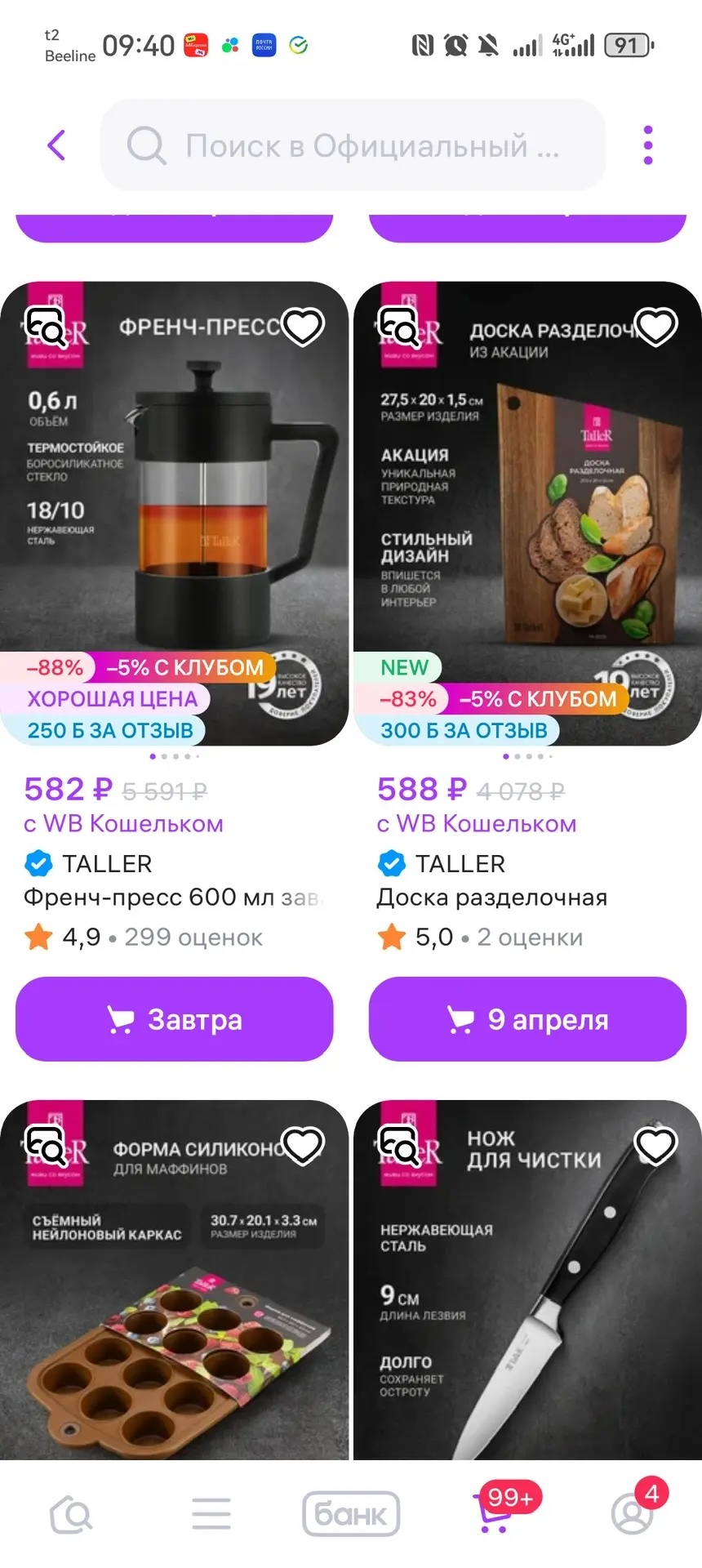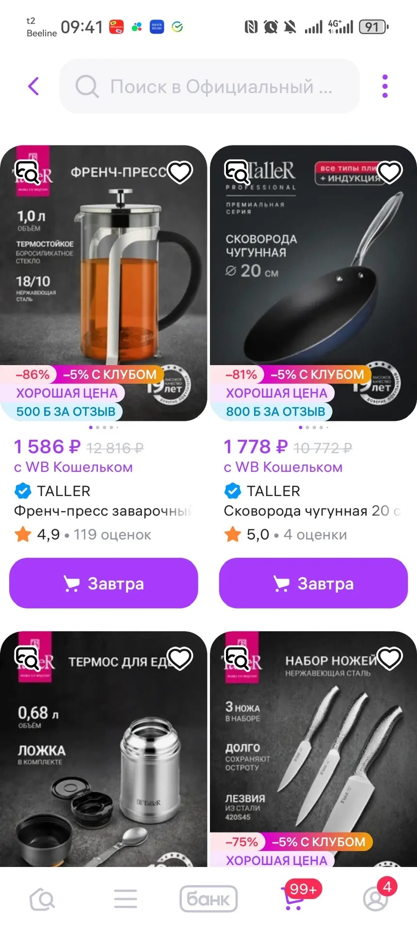 За отзыв начислят 90 баллов! С их учётом получится очень выгодной. Ещё нашла френч-пресс TALLER TR-32320, 600 мл за 582₽ + 250 баллов. У продавца можно найти много товаров с баллами за отзыв.
