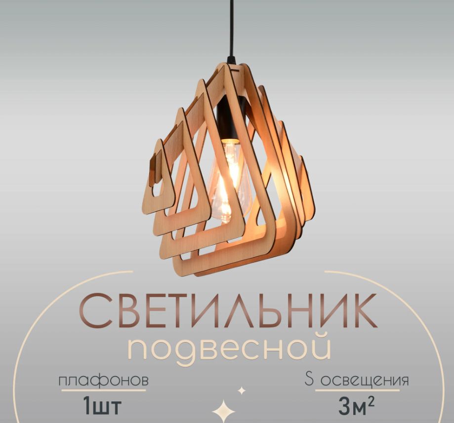 Подвесной деревянный светильник для кухни/спальни - 1002₽ (выглядит очень уютно).