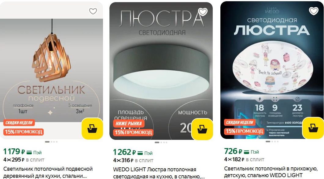 Искала небольшую люстру для детской и наткнулась на акцию на Яндекс Маркет. Сморите, тут скидка 15% по промокоду на целый каталог бренда WEDO LIGHT.