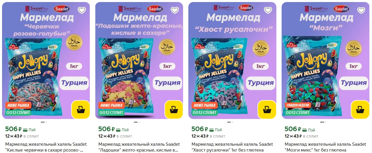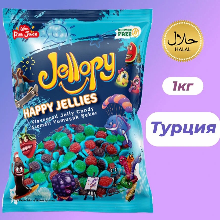 Вкусный и качественный жевательный мармелад весом 1 кг по 506₽. Продукция сертифицирована как халяль, не содержит глютен и ГМО.