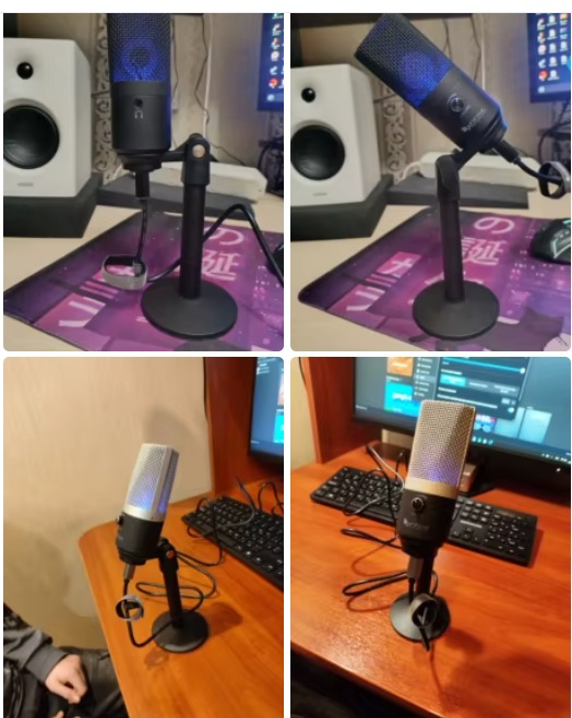 Вариант для тех, кому нужно быстро подключить хороший звук к ноутбуку или ПК. Внутри 16-мм диафрагма, звук собирает прилично, подходит для стримов, подкастов или зум-созвонов. Подключается по USB, никаких дополнительных звуковух не нужно. На корпусе есть регулятор громкости и AUX-разъём для наушников - можно сразу мониторить, как звучишь. Подставка устойчивая, отзывы хорошие.