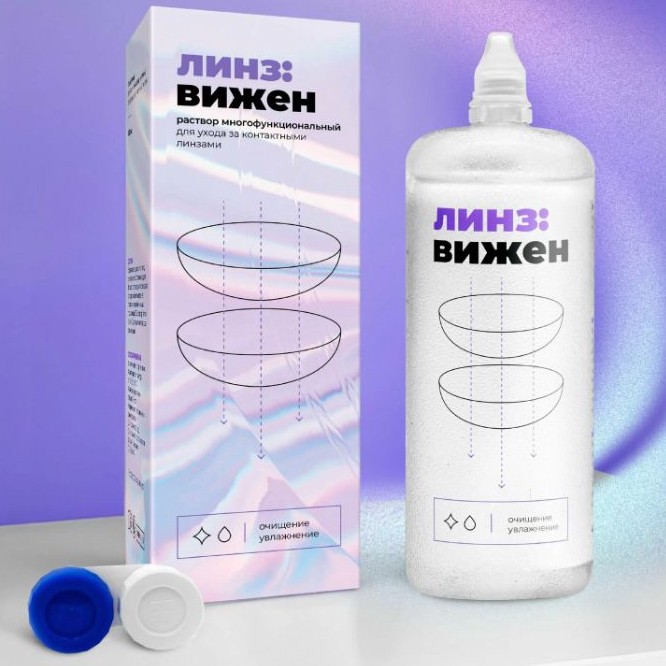 Очищает, дезинфицирует, хранит и увлажняет. В составе гиалуроновая и янтарная кислота - глаза не сушит. Подходит для мягких, жёстких и цветных линз, даже для чувствительных. Контейнер в комплекте.