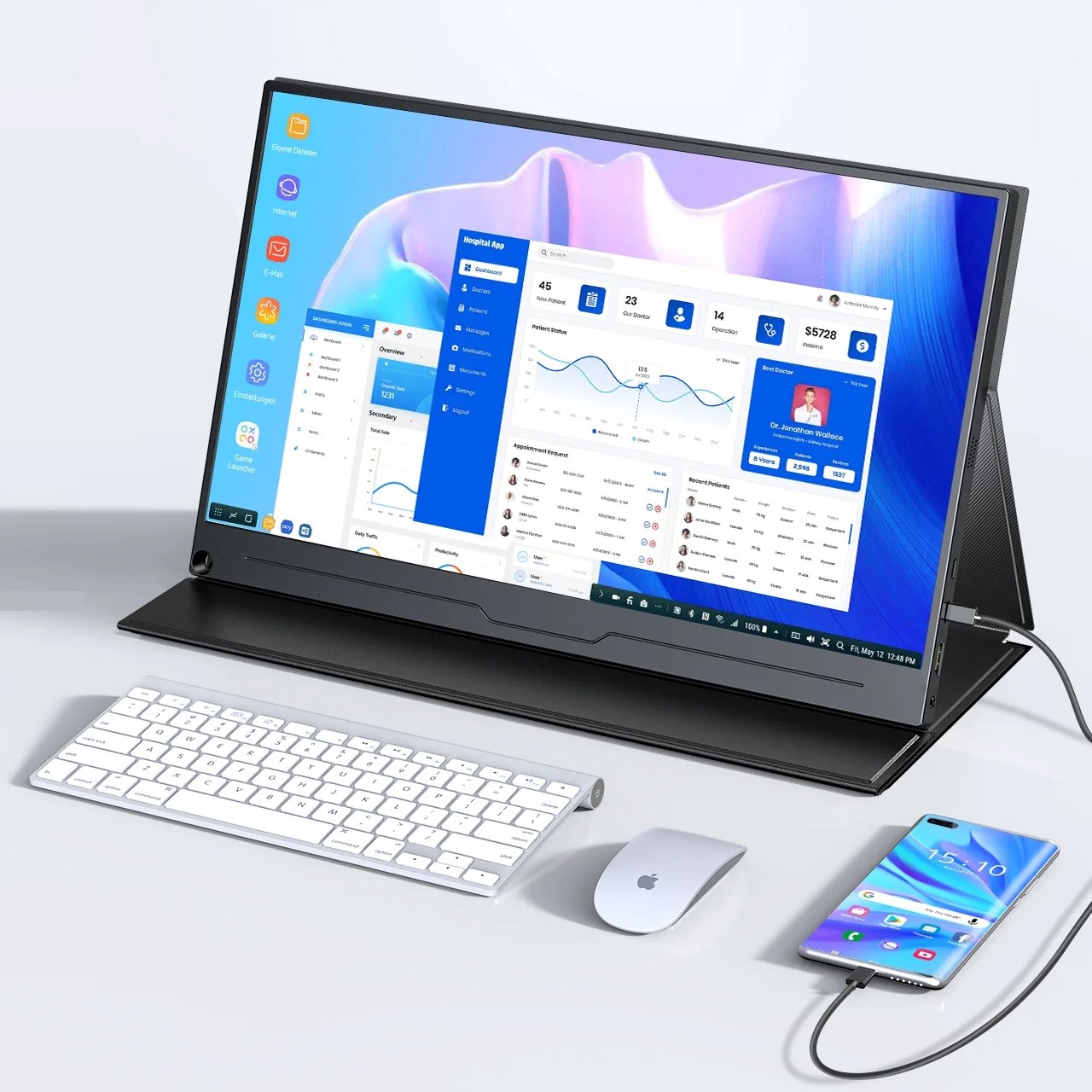 Готовое решение для тех, кому нужен удобный экран для просмотра документов, таблиц, фоном включить сериал или просто открыть вторую вкладку, чтобы не переключаться. Подключить можно его к ноутбуку, телефону или даже консоли одним кабелем USB-C и получается полноценный второй экран 15,6 дюйма с Full HD качеством. Легкий, тонкий, не требует драйверов. Для старых ноутбуков есть mini-HDMI (питание тогда нужно отдельно).