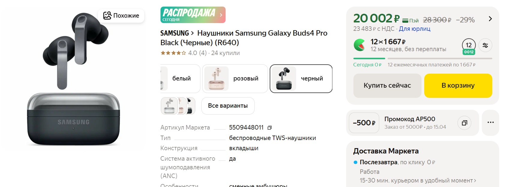 Наушники Samsung Galaxy Buds4 Pro Black (Черные) (R640) за 18002₽ с промокодом AP2000