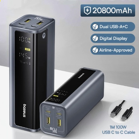 Главным преимуществом является возможность быстрой зарядки гаджетов и полноценного питания даже игровых ноутбуков через порт Type-C. У него удобный LED-дисплей, который показывает оставшийся заряд батареи, текущую выходную мощность и статус зарядки каждого порта.