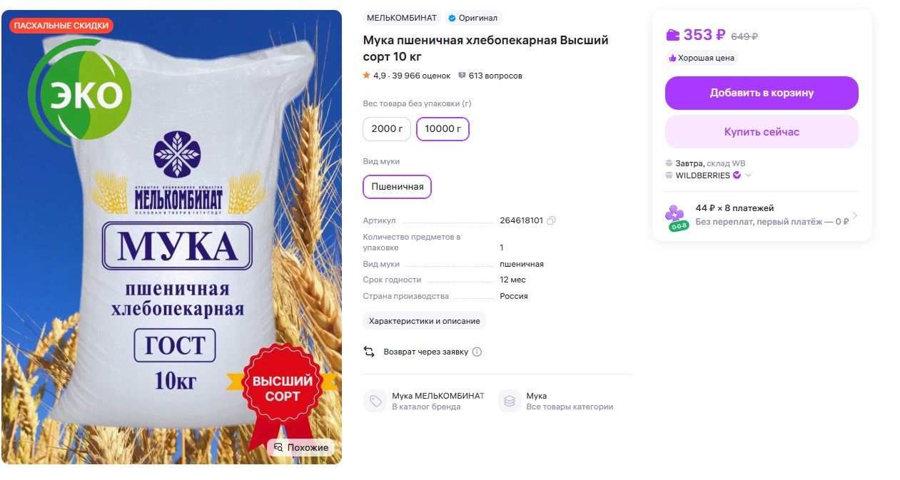Мука пшеничная хлебопекарная Высший сорт 10 кг по классной цене