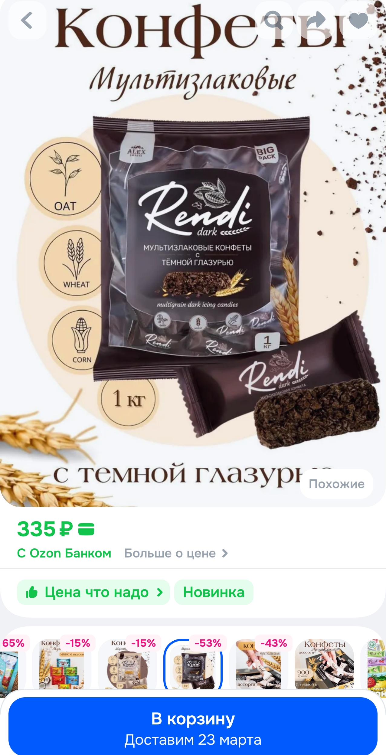 Мультизлаковые конфеты Rendi с темной глазурью, 1кг. На вб и в паре такие по 600р