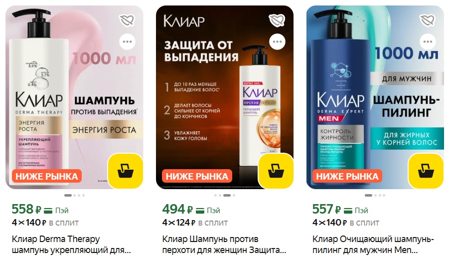 Шампуни известные, есть как для мужчин, так и для женщин, направлены на борьбу с перхотью и укрепление волос. Средства в бутылках объёмом 1 л, хватит надолго.