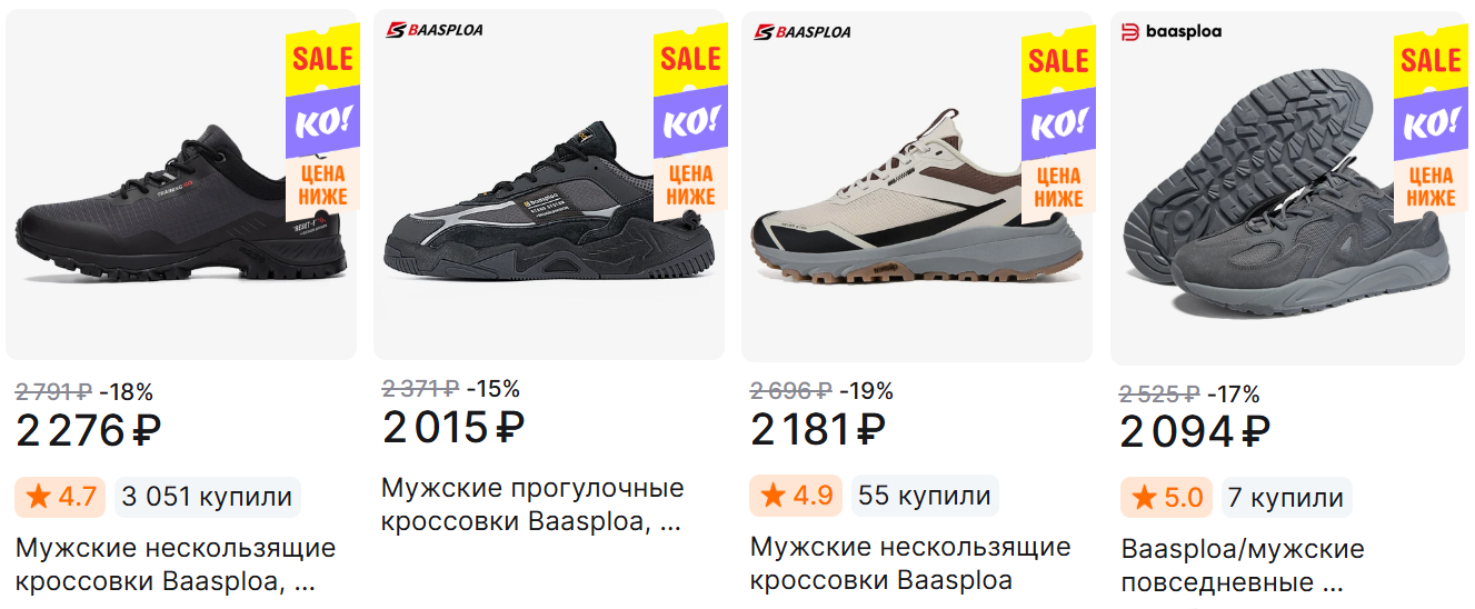 На AliExpress хороший выбор мужских кроссовок Baasploa по выгодным ценам при покупке через комбо-корзину. Присматривай на весну для повседневной носки или для занятий спортом.