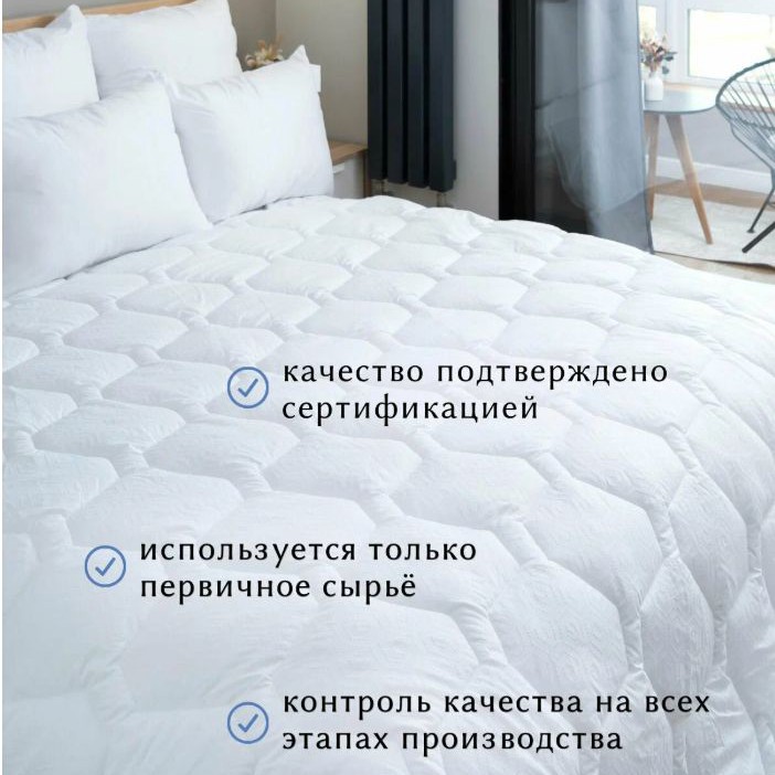 Размер евро, 200х220. Внутри наполнитель с массажным эффектом, чехол мягкий. На любой сезон. Детям можно - гипоаллергенное.
