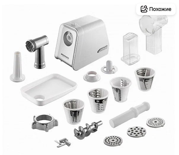 И насадок куча: для колбас, для кеббе (кто любит восточную кухню), тёрка и шинковка. В общем, не только мясо крутить, но и овощи для заготовок.