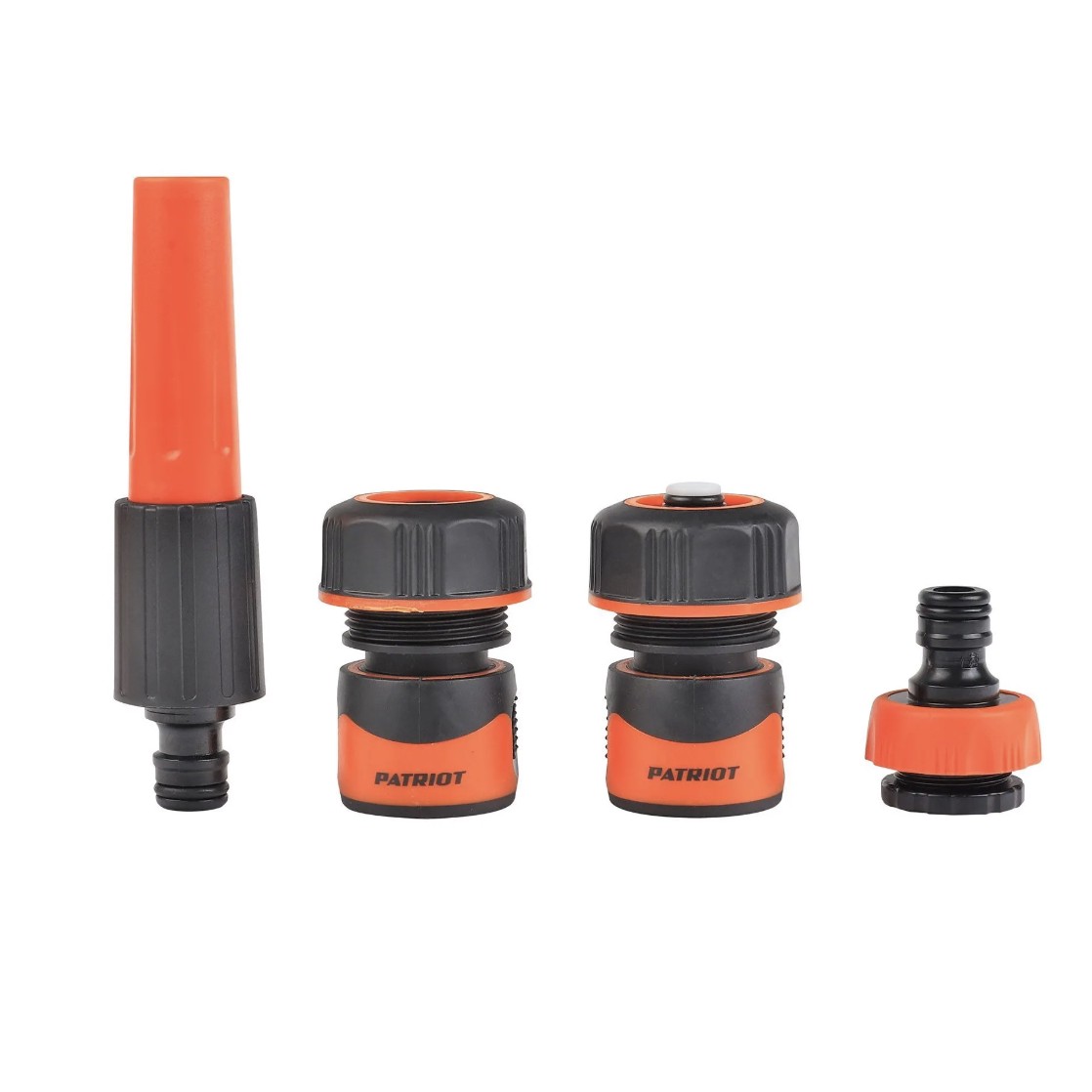 С этим набором можно собрать поливочную линию из шланга на 3/4 дюйма и подключите её к трубе или крану с внешней резьбой 1/2 или 3/4.
