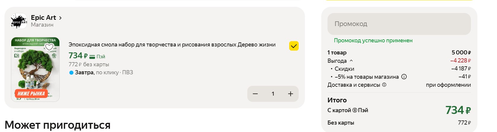 В карточке товара ещё можно выбрать набор для творчества Море за 660 рублей.