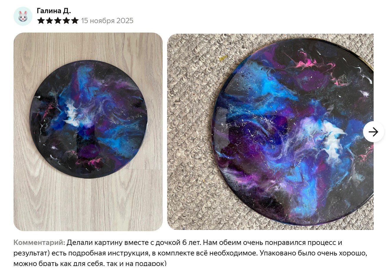 Мы семьёй уже делали часы, нам понравилось, теперь вот заказали космос.